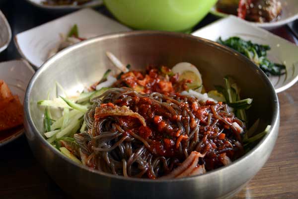 牛肉チヂミと一緒に食べるビビンネンミョン