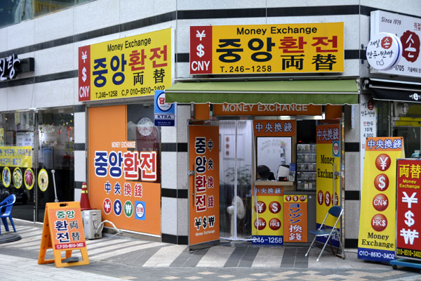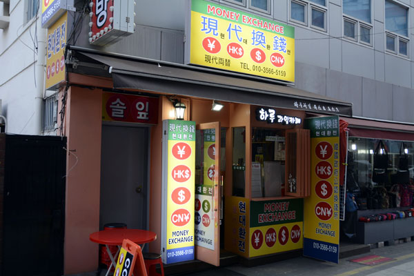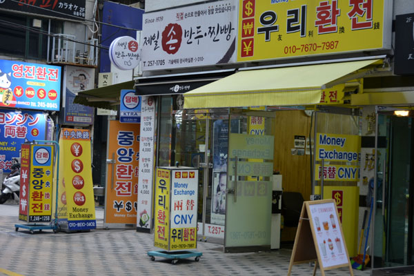 釜山地下鉄1号線の南浦(ナㇺポ)駅7番出口から徒歩1分という場所にあり、国際市場、チャガルチ市場などの観光スポットも近くにあって、観光中にウォンを使いきってしまったり、もう少し両替してほしい旅行者とっては本当に便利に利用できます。また、市内銀行が営業しない休日でもオープンするところも多く、パスポートもほとんど要らないそうで、お気楽に両替ができそうですね^^