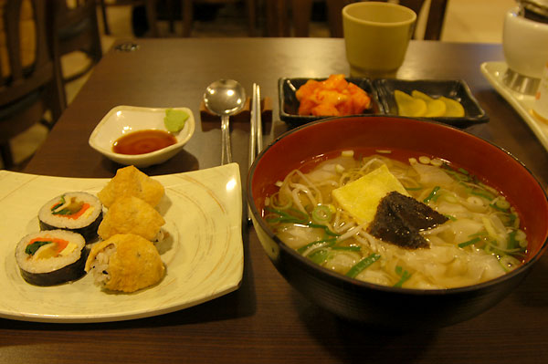 ワンタン+チェンバンモミル(ざるそば)+ユブチョバップ(いなり寿司)