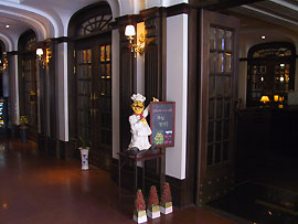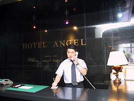 それでは、ホテルの施設チェックしてみます。9階建てのエンゼルホテルの地下1階はノレバン(歌ができるルーム)、ホテルのロビーの1階は朝8時から夜11時まで営業しているコーヒーショップを兼ねたバー、2階はマッサージ室と日食レストランの漁夫屋があり、3階から8階までは客室、9階はカラオケになっています。
