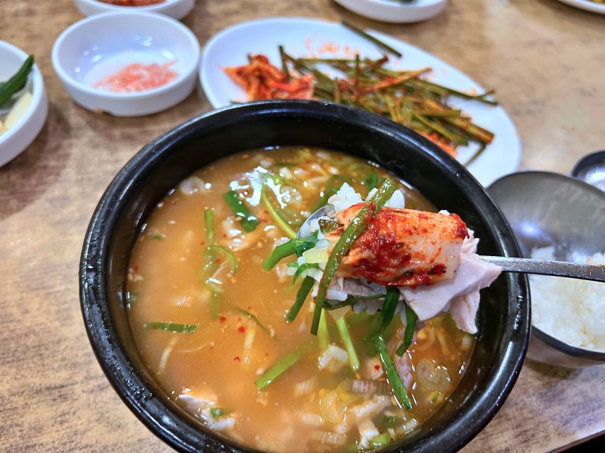 こんにちは、韓国高速鉄道KTXが到着する釜山駅の隣に、釜山を旅行する観光客に人気の豚肉のスープ、豚肉クッパの人気店であるボンジョンテジクッパがあります。ネギ、適度に切った豚肉が入ったさっぱりとした豚肉スープに、ニラの和え物と塩辛で味を調えて混ぜて食べます。