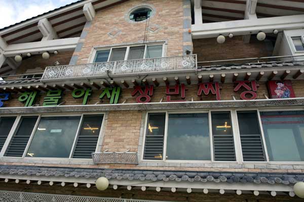 こんにちは、釜山市の東部海岸に位置する機張郡海東龍宮寺は、波が打ち返す岩場に建てられた美しい海の寺として人気を集めていますが、その龍宮寺に向かう道路の入口にはチャジャンミョンが食べられる食堂があります。海鮮たっぷりのチャジャンミョンが大皿に盛られた海鮮チェンバンチャジャンが人気です。甘い普通のチャジャンミョンと違ってピリッとした辛味で、クンマンドゥ(焼き餃子)やタンスユッ(酢豚)と一緒に食べるともっと美味しくいただけます。