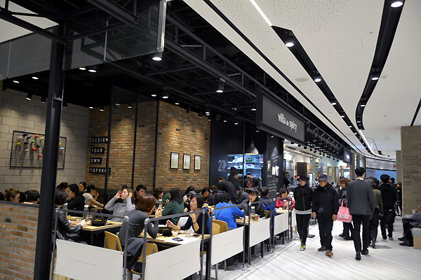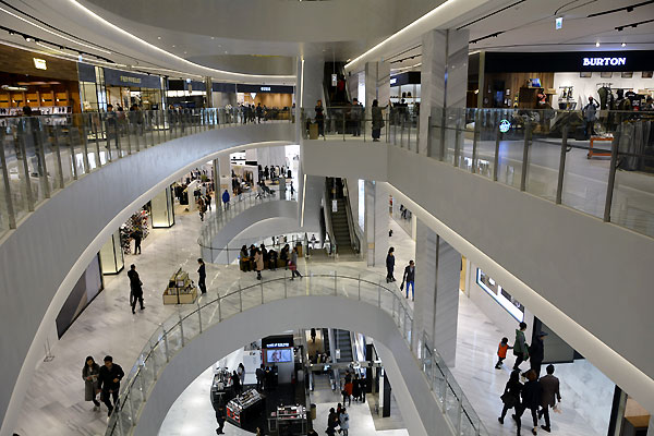 新世界センタムシティモールの内部、新世界百貨店と陸橋で繋がれています