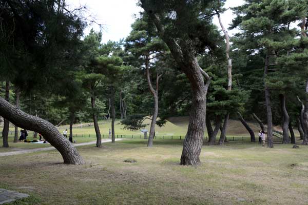慶州市内からやや北にある海抜176メートルの小金剛山(ソクムガンサン)の麓には新羅の第4代の昔脱解王陵(ソッタルヘワンヌン、紀元前57~80年)があります。新羅初期の王陵としてもこじんまりとした古墳ですが、緑たっぷりの松林に囲まれた脱解王陵はとても静かで、慶州市民たちの憩いの場所としても人気があります。