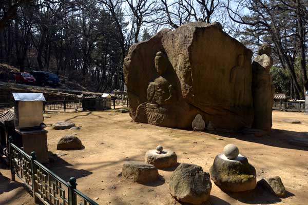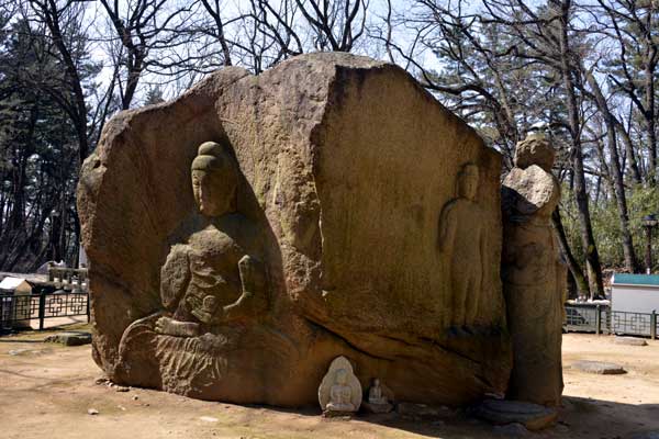 慶州の北側の小剛山の麓に位置している掘仏寺址の四面仏は、統一新羅時代に刻まれた高さ約3.5メートルの大きな花崗岩の岩に様々な仏像を刻んだ「四面仏」です。