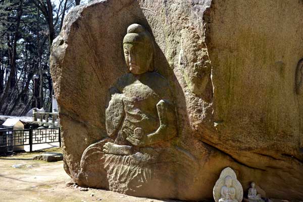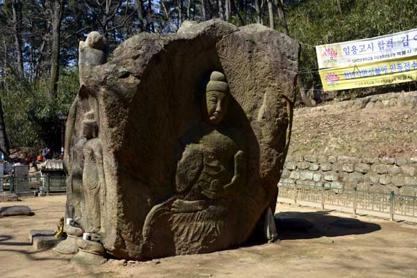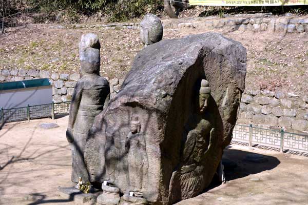 「三国遺事」による掘仏寺は、仏国寺を創建した新羅第35代の景徳王様が栢栗寺(ペンリュルサ)に訪れようとする時、掘仏山の下から念仏を唱える音が聞こえてくることに気がついてそこを掘り出したら四面に仏像が刻まれている大きな岩が出てきました。そこで、仏像が出てきた場所にお寺を建設し、お寺の名前を掘仏寺だと名付けるようになりました。
