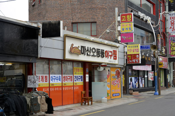 こんにちは、美しい桜が咲き乱れる毎年4月になると鎮海では鎮海軍港祭りが開催され、大勢の花見客で賑わいますが、あの鎮海から車で約30分ほど走ると港町・馬山(マサン)の名物料理・アグチム(辛口のアンコウの蒸し煮)が味わえるアグチム通りがあります。馬山(マサン)は昔からアンコウがよく獲れた港町で、初めはふぐ鍋のように料理していたが、今はコチュジャンベースの豆もやし、せりーなどの野菜にアンコウを蒸し煮したアグチムとして全国に有名になり、午東洞アグチム通りはアグチム専門の食堂が、今も多数軒を連ねています。