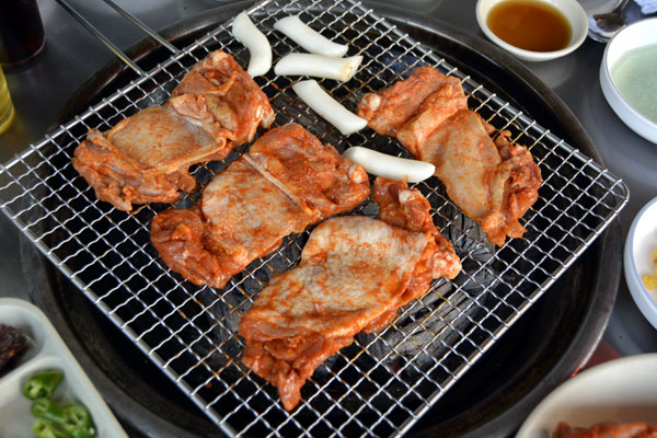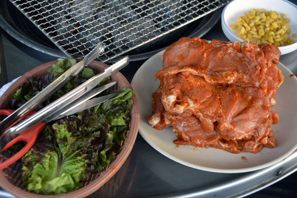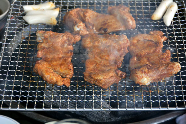 ヤンヨムスップルタッカルビ/양념숯불닭갈비 鶏肉の味付けの炭火焼肉 12,000ウオン