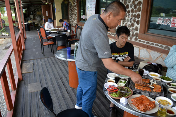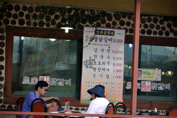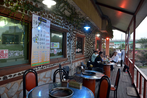 春川駅から昭陽江(ソヤンガン)ダムへの向かう通り道に位置する農家タッカルビは、お店の特製タレにマリネードして一日ほど寝かした鶏肉を自慢の炭火で焼いて食べるタッカルビ屋さんです。春川市内にタッカルビ通りもありますが、こちらは本来の春川タッカルビの調理方法をいかして炭火で焼くタッカルビです。