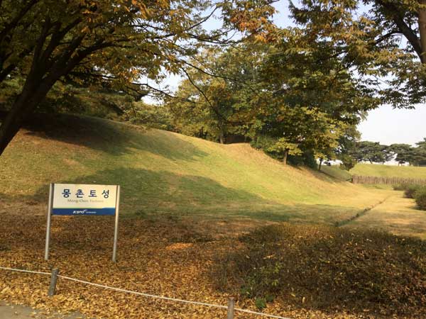1988年に開催されたソウルオリンピックのときに造成された広大なオリンピック公園内にある夢村土城は3~4世紀ごろに北側から攻め込んでくる高句麗軍の防衛するために漢江の自然丘陵を利用して土を突き固めてつくられた土城です。土城の全体大きさは南北730メートル、東西570メートルのひし形にしており、城壁全体の長さは約2,700メートルにも達しています。
