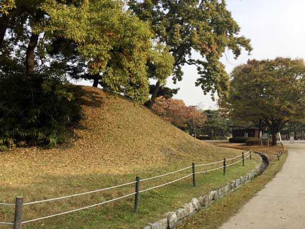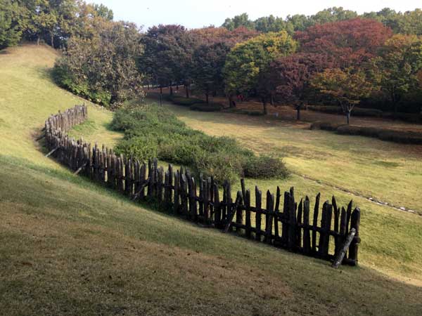 緑たっぷりの広大なオリンピック公園内にある百済初期の夢村土城