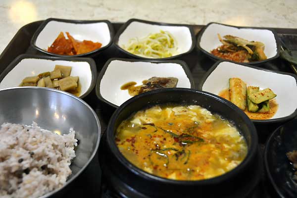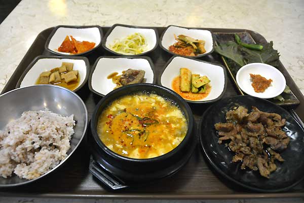 こんにちは、釜山南浦洞の光復路に位置するソウルスンドゥブで味わったボリューム満点のスンドゥブチゲです。この食堂はスンドゥブチゲ専門店ですが、最近、スンドゥブチゲを頼むと豚の焼肉も付いてきます。豚の焼肉を野菜に包み、スンドゥブチゲと一緒に食べたら美味しいです。また、一人分の注文もできますので、お一人でもお気楽に利用できます。