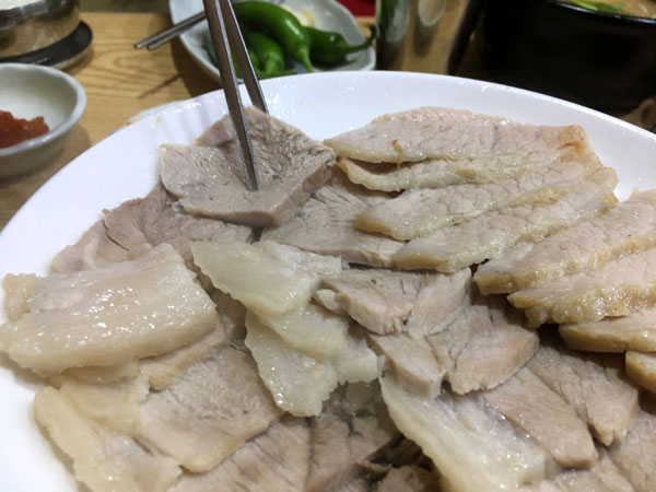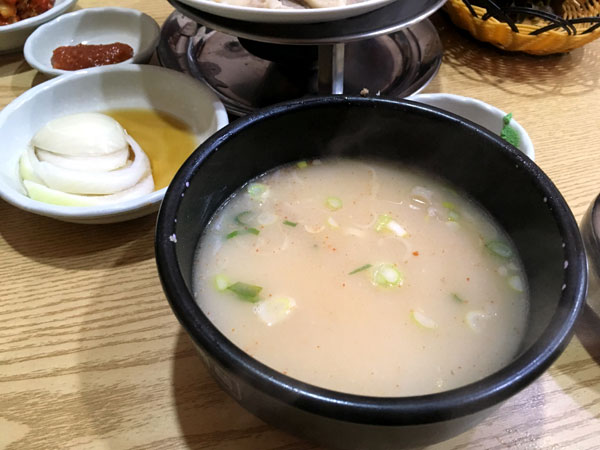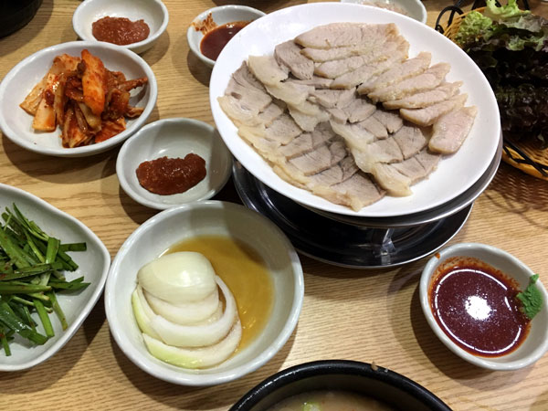 釜山名物であるテジクッパは、釜山のあちこちらに多くあり、その食堂ならではの味を作っていますが、釜山博物館とUN記念公園の近くにあるサンドゥンイデジクッパは、豚のスープとは考えられないほどさっぱりした味を誇っています。釜山名物のテジクッパが食べたいけどこってりした味が気になる方々には、この薄味のテジクッパをお勧めしますが、薄くスライドした茹で豚のスユクを火で温めながら味わえるスユクベクパンも柔らかくておいしいです。