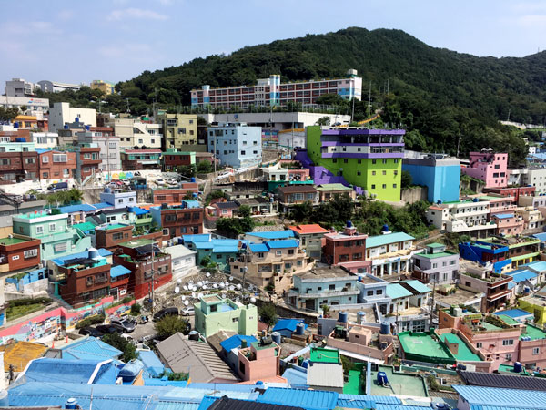 こんにちは、大きな鉄の釜をひっくり返しておいたような地形から名づけられた釜山は、山の斜面にカラフルな屋根の住宅がずらりと立ち並んだ景色で、世界各国の観光客が訪れる人気の観光スポットとして位置付けた甘川文化マウルの注文した飲み物の受け取り方も実に面白い。飲み物を注文すると高い小さな窓からひもなどでお客に直接渡してくれる。